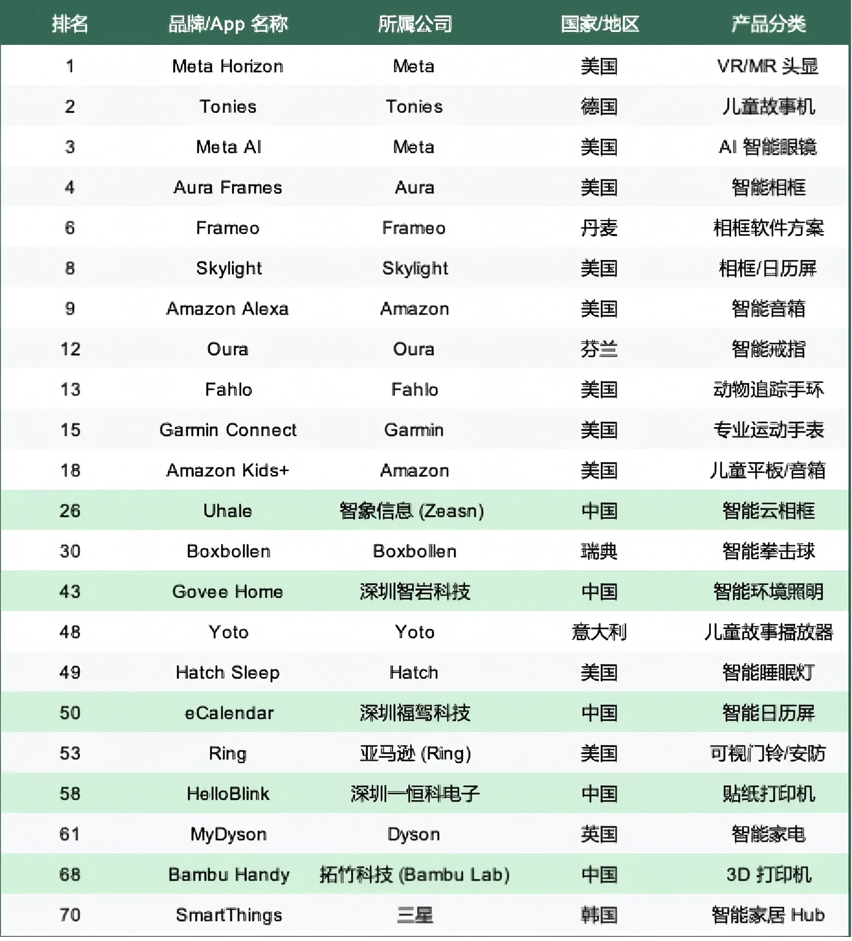 白鲸出海整理:美区 iOS Top 210 中智能硬件相关 App排名(部分)